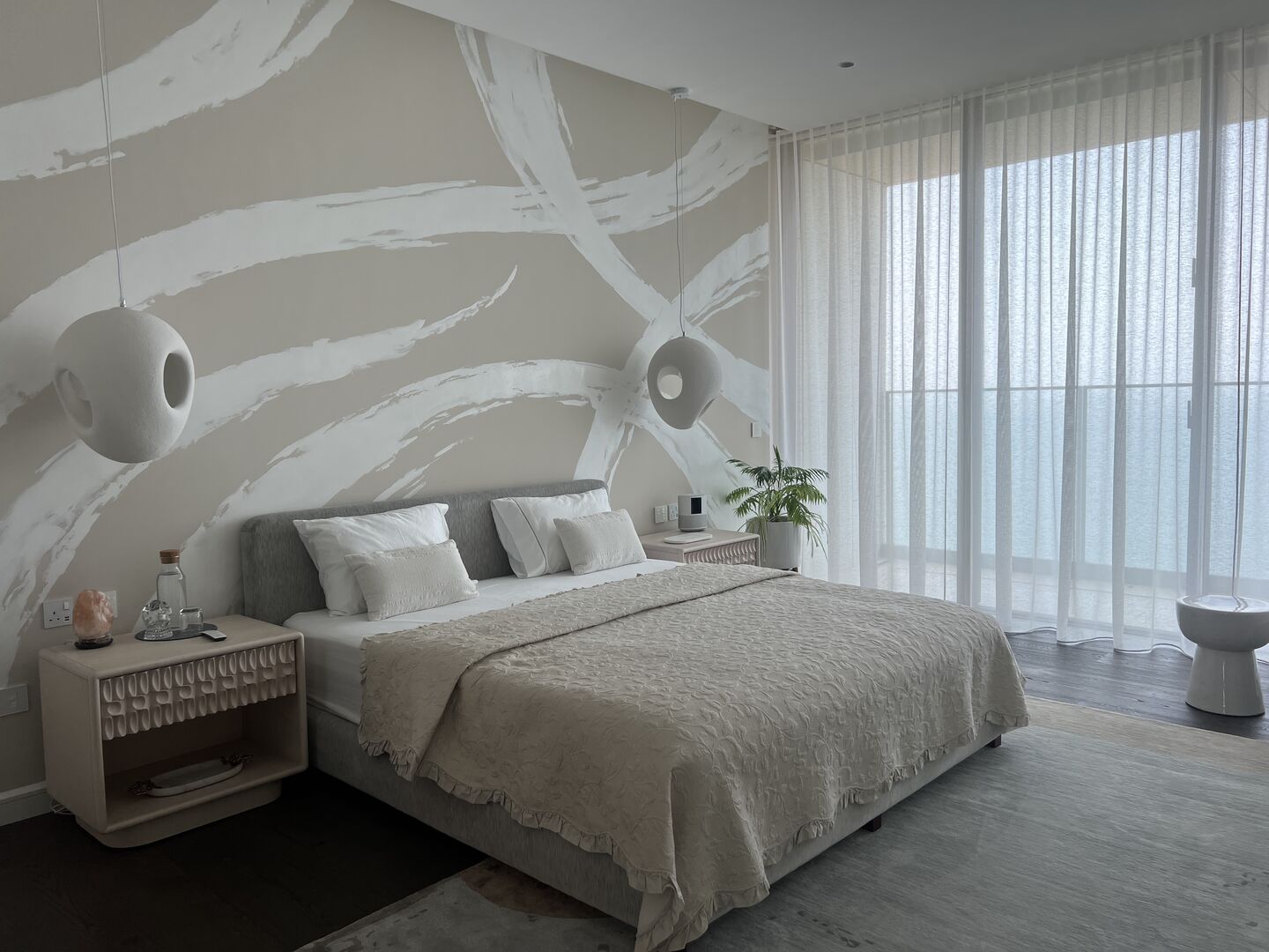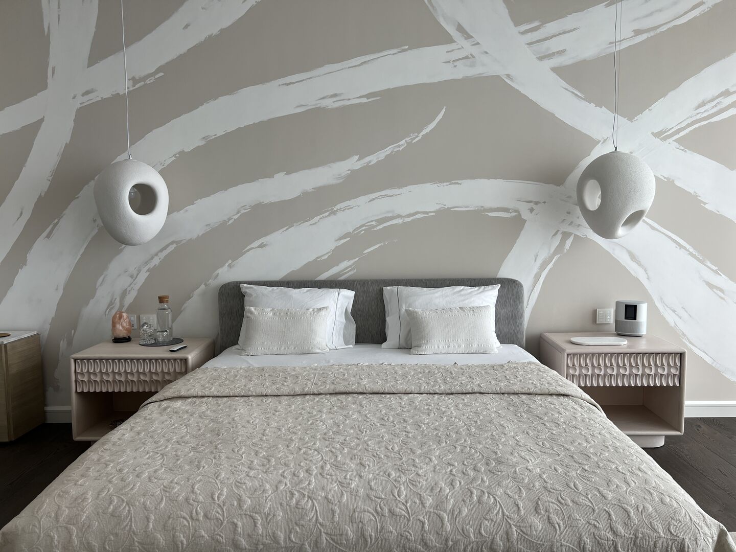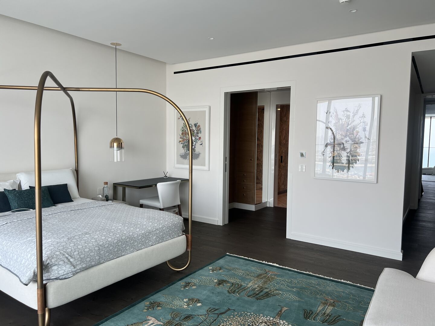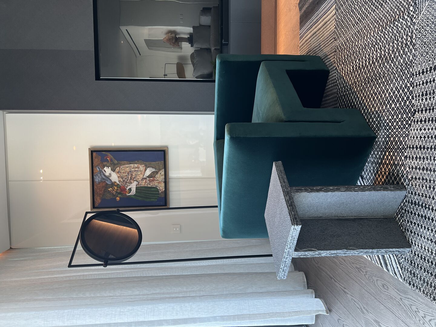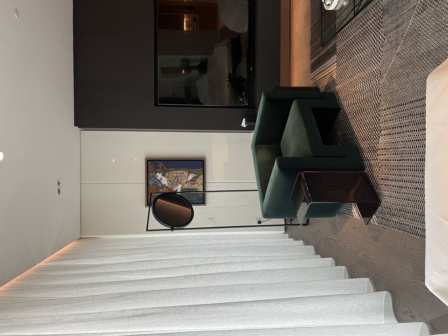 The choice of Art, all made from textile, paper, ceramic, and pencil by predominantly female artists, was integral to the design, and offered something gentle and effecting. Coupled with objects from antiquity to 20thC, the design overall feels both peaceful and fresh at the same time. This comes through, too, in the sense of lightness permeating every space, not just in the way sunshine softly filters through each room from morning to night, but also in the pared-back choreography of pieces Rose curated for each room.