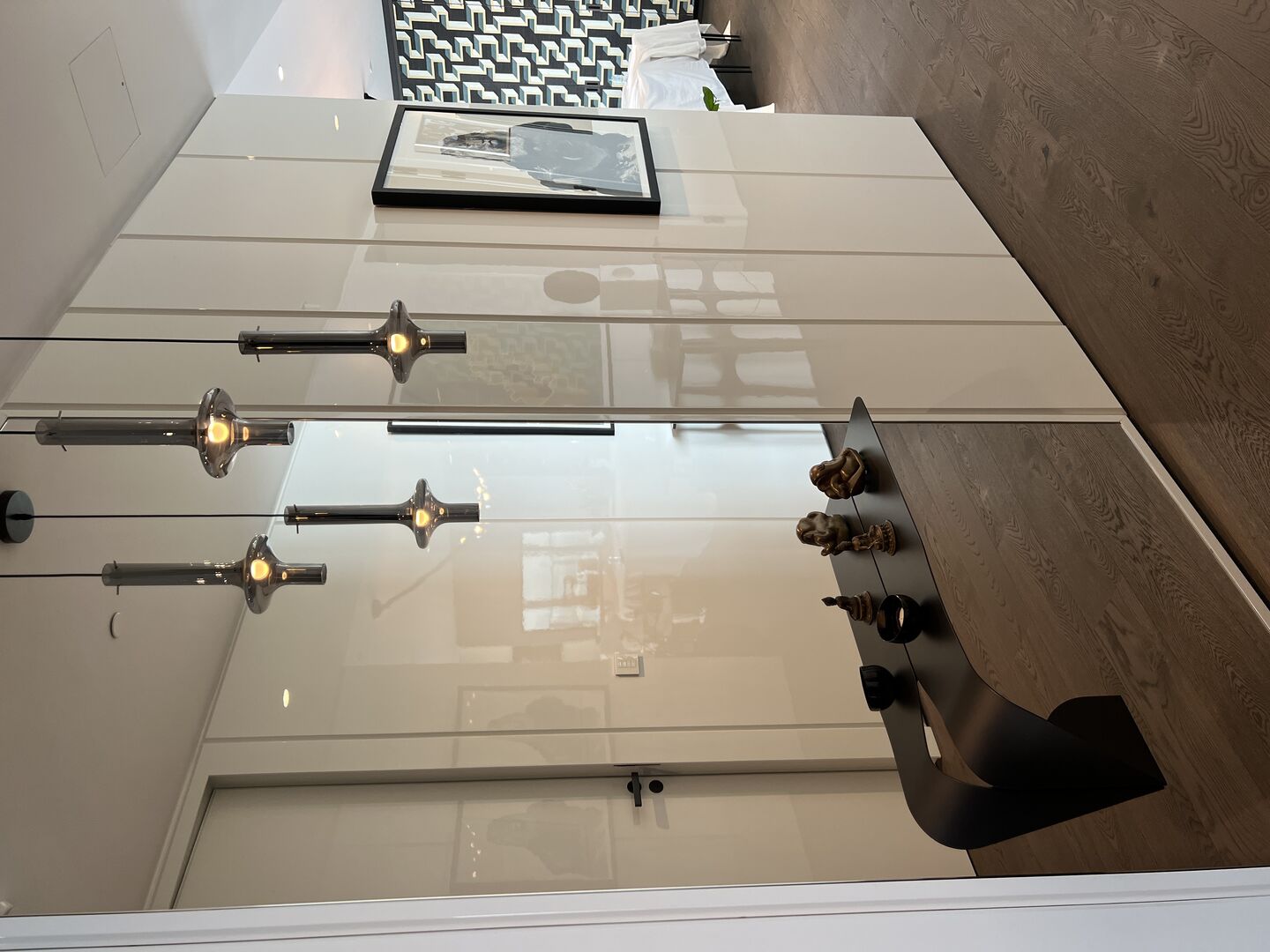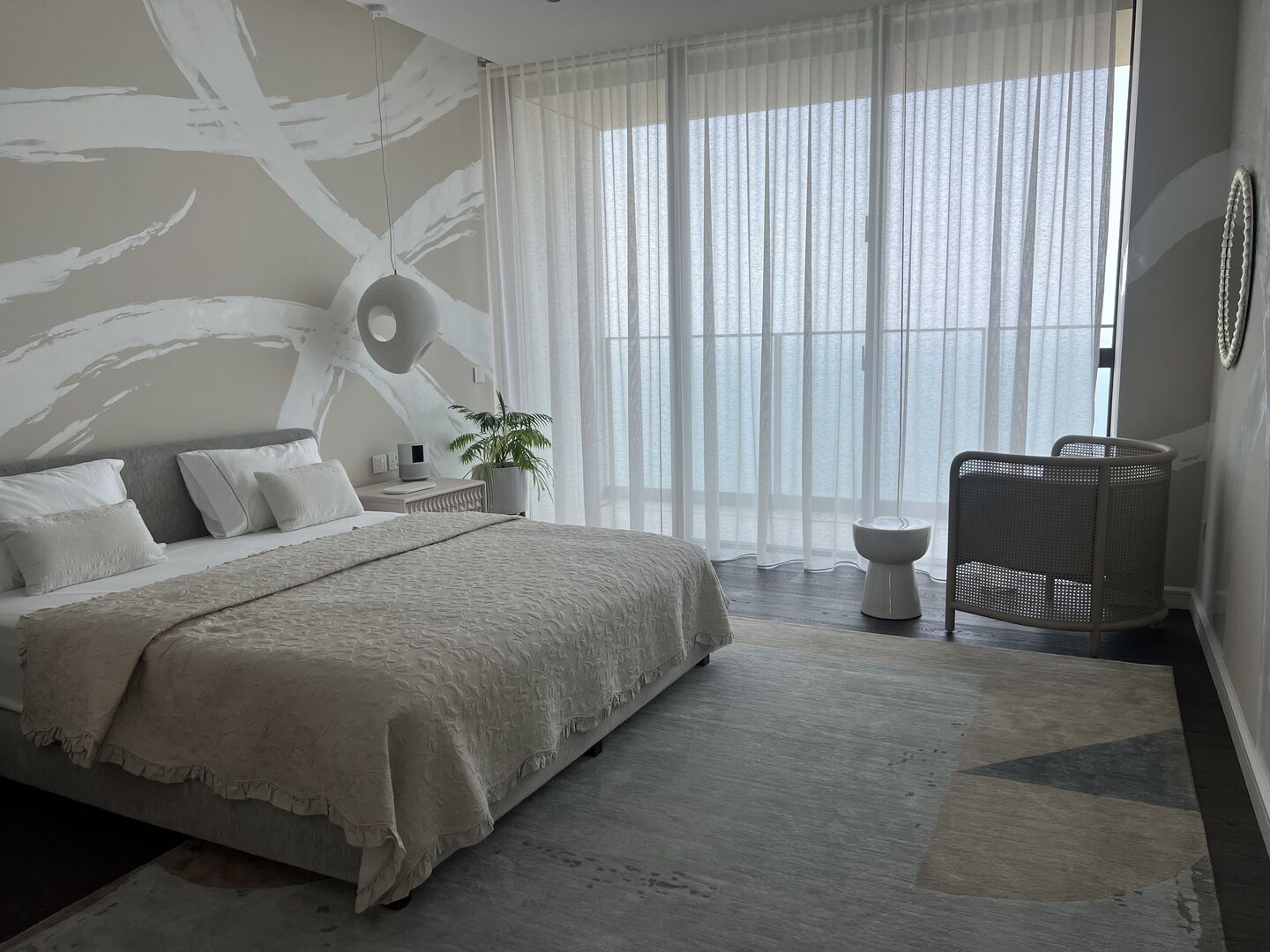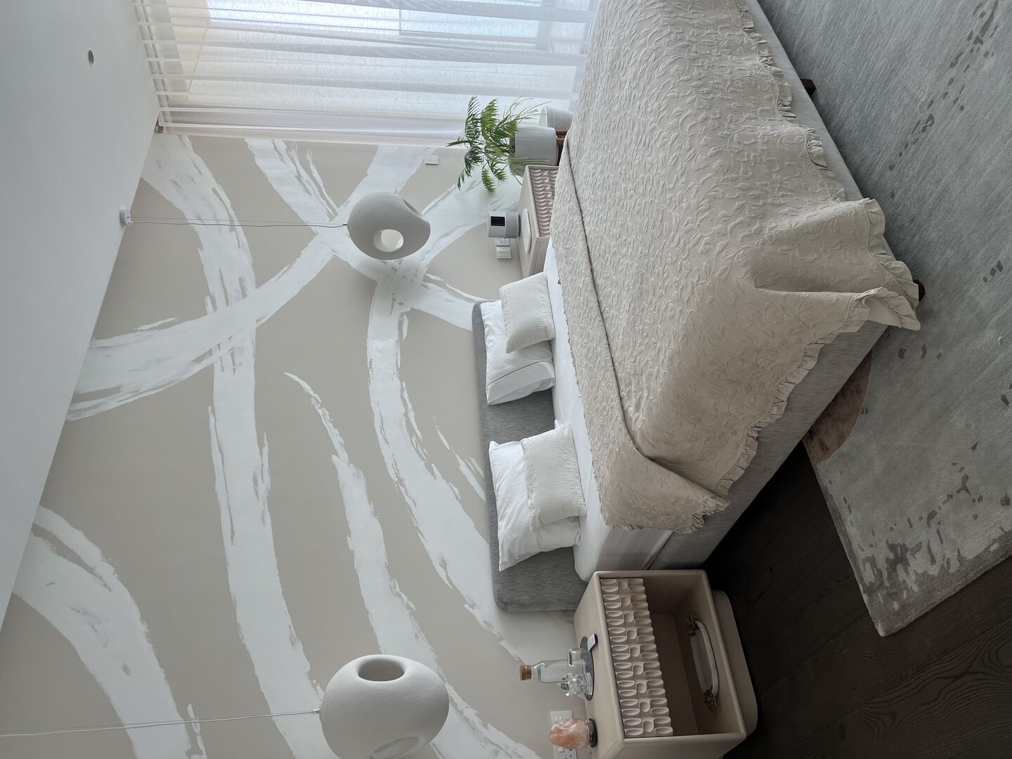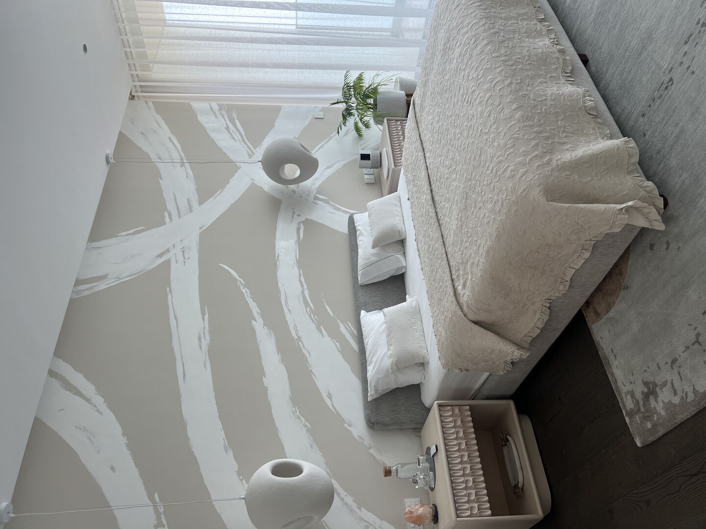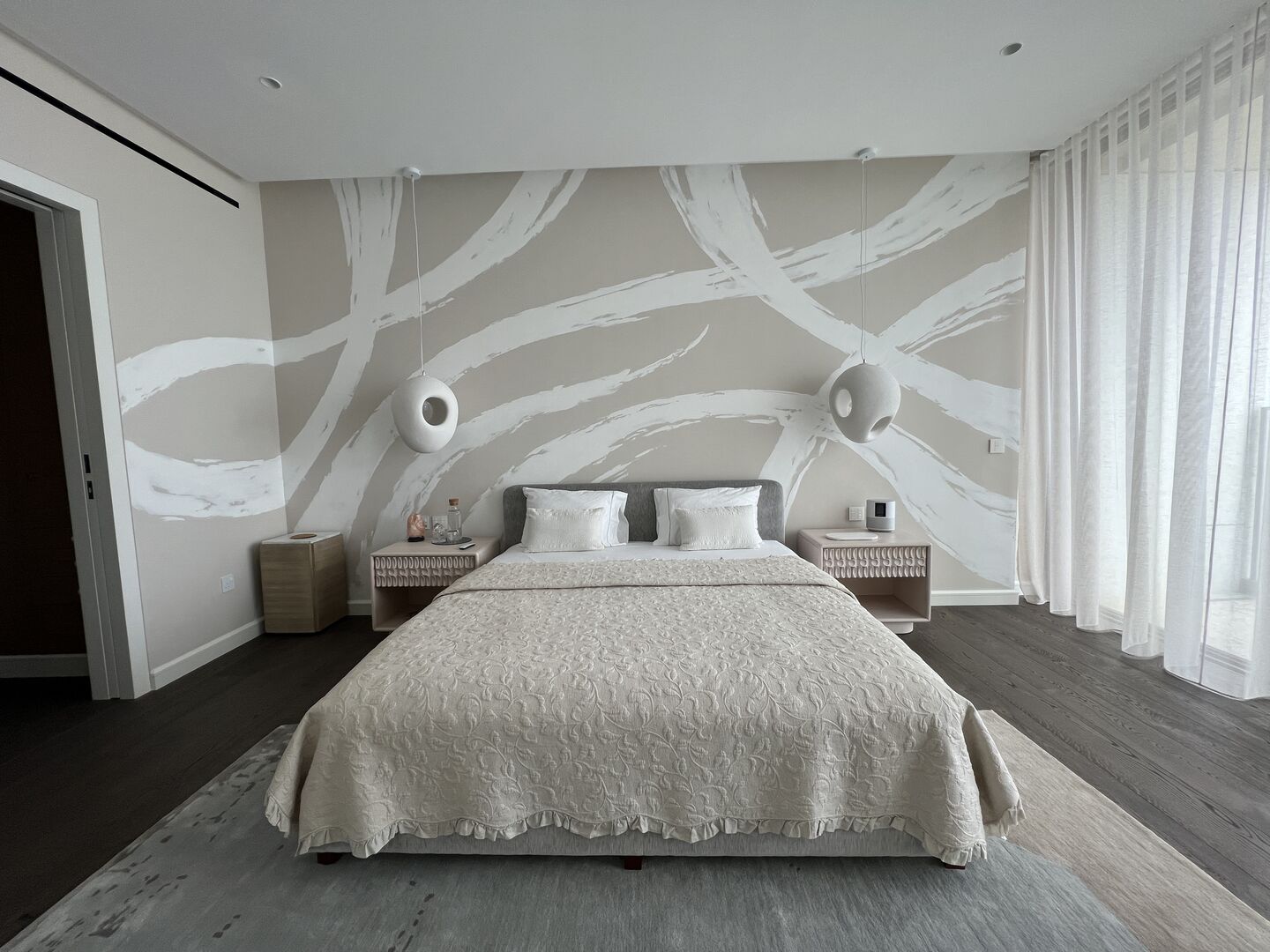 The choice of Art, all made from textile, paper, ceramic, and pencil by predominantly female artists, was integral to the design, and offered something gentle and effecting. Coupled with objects from antiquity to 20thC, the design overall feels both peaceful and fresh at the same time. This comes through, too, in the sense of lightness permeating every space, not just in the way sunshine softly filters through each room from morning to night, but also in the pared-back choreography of pieces Rose curated for each room.