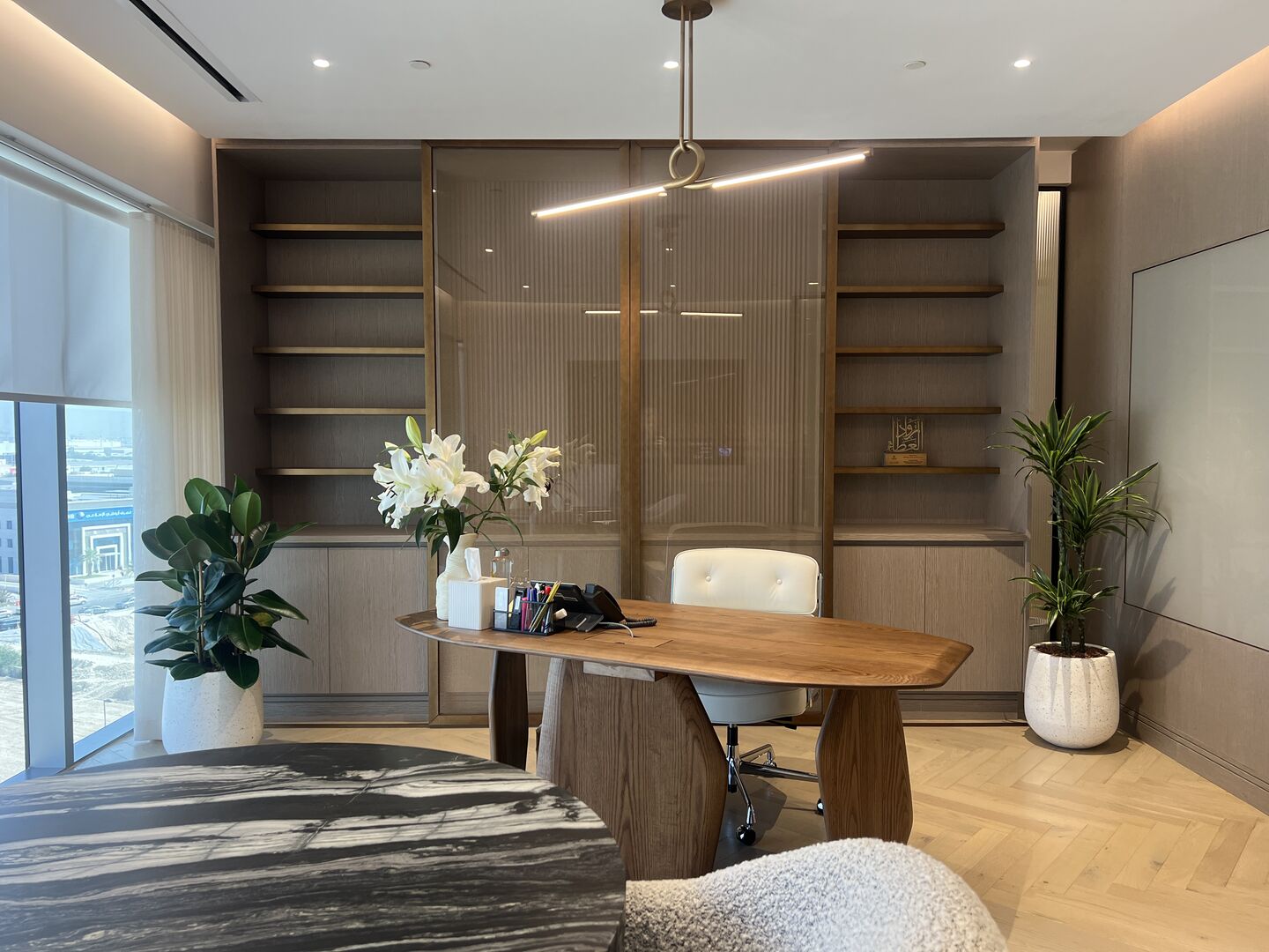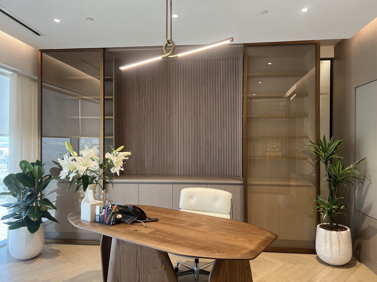 Rose wanted to create a light, modern, elegant, and particularly feminine home office that reflected the client’s personal style and complemented the charming period bones of this Georgian house.