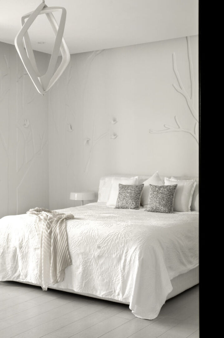 The choice of Art, all made from textile, paper, ceramic, and pencil by predominantly female artists, was integral to the design, and offered something gentle and effecting. Coupled with objects from antiquity to 20thC, the design overall feels both peaceful and fresh at the same time. This comes through, too, in the sense of lightness permeating every space, not just in the way sunshine softly filters through each room from morning to night, but also in the pared-back choreography of pieces Rose curated for each room.
